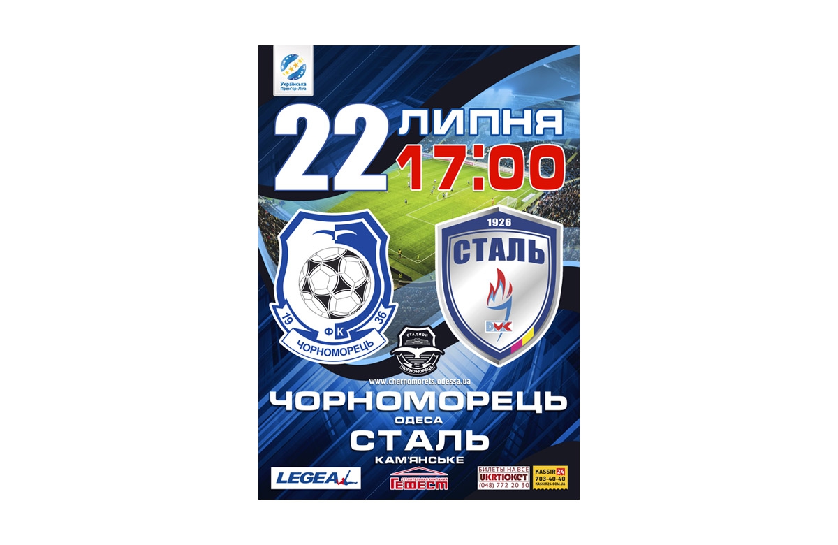 Началась реализация билетов на матч 2-го тура чемпионата УПЛ между командами «Черноморец» (Одесса) и «Сталь» (Каменское), который состоится 22-го июля 2017 года (начало в 17:00).
