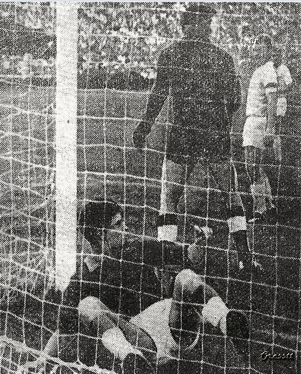 (Фото из «Спортивної газети». Слева направо: динамовец А. Бышовец, «моряки» А. Ярчук и Ю. Заболотный)