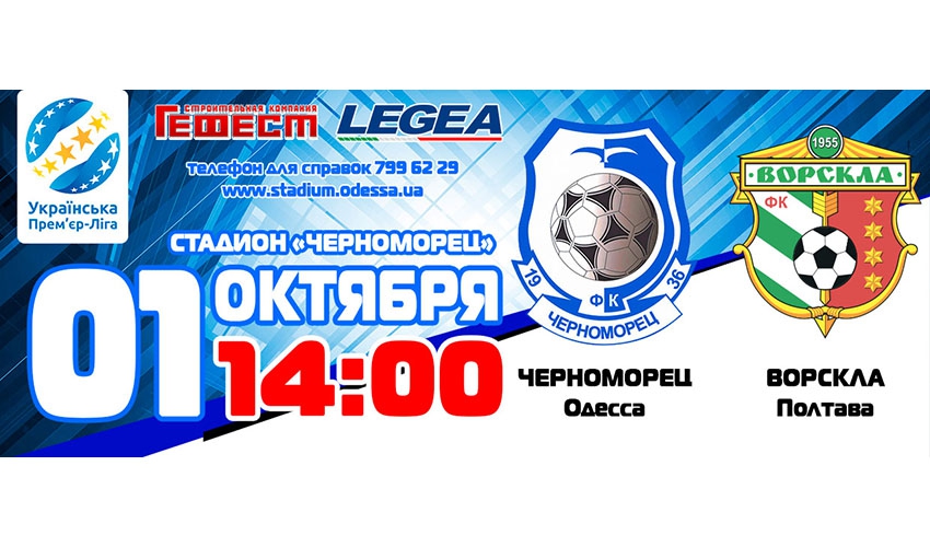 Сегодня началась реализация билетов на матч 11-го тура чемпионата УПЛ между командами «Черноморец» (Одесса) и «Ворскла» (Полтава), который состоится 1-го октября (начало в 14:00).