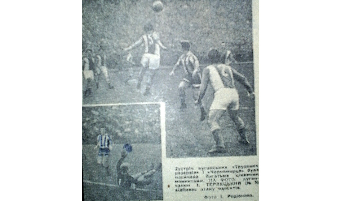 1962 год — «Черноморец» — «Трудовые резервы» Луганск — 2:2 (1:1). Чемпионат СССР. Одесса. Центральный стадион ЧГМП. Голы: А. Двоенков (4), А. Колдаков (75) — И. Балаба (15, 62). (фото 1)