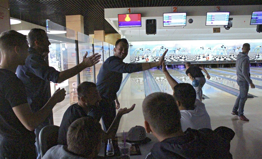 Сегодня во второй половине дня футболисты и тренеры «Черноморца» отправились в… боулинг. Там «моряки», разбившись на четыре команды, устроили азартное состязание. Было много положительных эмоций, масса страйков и торжественное награждение победителей. Выиграла мини-турнир команда во главе с капитаном «Черноморца» Сергеем Люлькой, медали за второе место получила «шестерка» Максима Третьякова. Остальные участники «заработали» концертные номера в собственном исполнении: третьи призеры (Алексей Хобленко и Ко) спели, четвертая команда (Сильвио и Ко) станцевала.