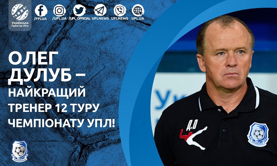 Лауреат 12-го ігрового дня в номінації «Тренер туру» Прем’єр-ліги: