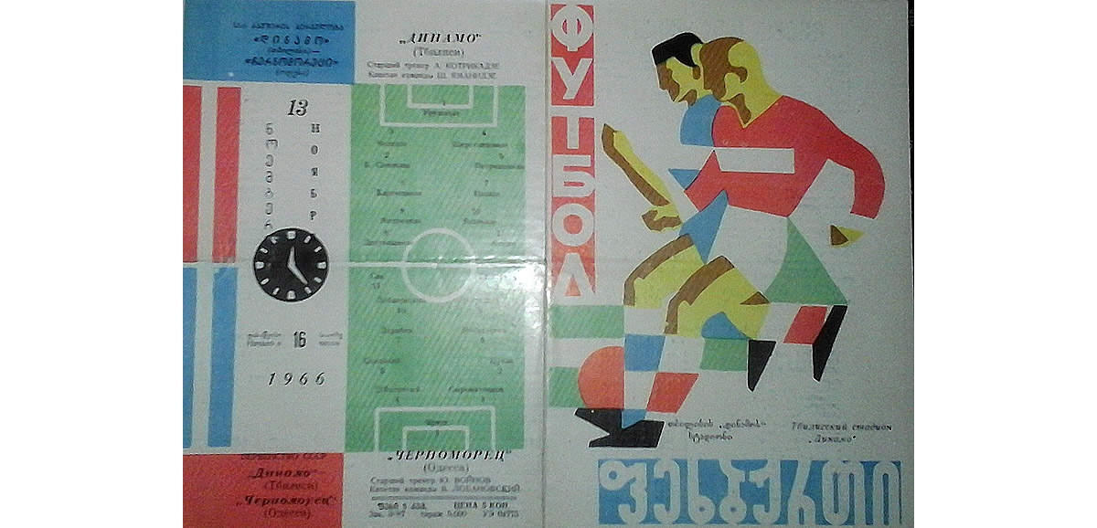 1966 год — «Динамо» Тбилиси — «Черноморец» — 1:1 (0:0). Чемпионат СССР. Тбилиси. Стадион «Динамо». Голы: В. Лобановский (81) — С. Метревели (78).