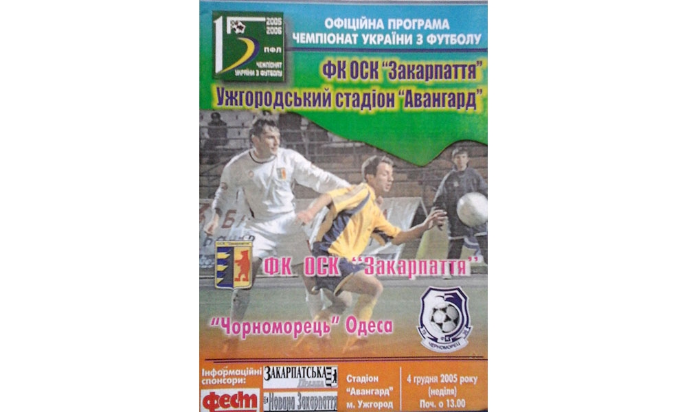 2005 год — «Закарпатье» Ужгород — «Черноморец» — 2:1 (0:0). Чемпионат Украины. Ужгород. Стадион «Авангард». Голы: Ю. Митерев (53-пенальти) — А. Пихур (64), С. Рыжих (72). Не реализовал пенальти Ю. Митерев (67, парирован). Подробнее.