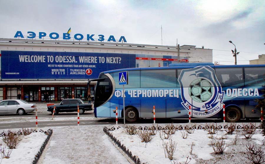 Сегодня команда «моряков» все-таки вылетела из заснеженной Одессы на турецкое средиземноморье, где проведет два тренировочных сбора. Первый пройдет в Белеке в отеле «Риу Кайя», второй – в хорошо знакомом «Черноморцу» «Старлайте», расположенном в окрестностях Сиде. Одесситы сыграют 12 товарищеских матчей. В состав делегации нашего клуба вошло 27 футболистов: Дмитрий Безрук, Андрей Кожухарь, Алексей Антонов, Бамба, Ивица Жунич, Евгений Зубейко, Кирилл Ковалец, Сергей Люлька, Мамаду, Евгений Мартыненко, Александр Машнин, Николай Мусолитин, Дмитрий Семенив, Виктор Серденюк, Евгений Смирнов, Олег Соколов, Павел Ореховский, Михаил Плохотнюк, Никита Татарков, Максим Третьяков, Владислав Хамелюк, а также шесть игроков, находящихся на просмотре.