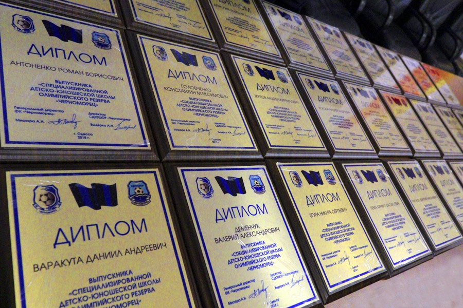 Сегодня на стадионе «Черноморец» прошло торжественное вручение дипломов об окончании СДЮШОР нашего клуба команде U-17. Поздравили юных «моряков» генеральный директор ФК «Черноморец» Анатолий Мисюра, директор футбольной школы Артем Выдерко и тренер Ашур Имад.