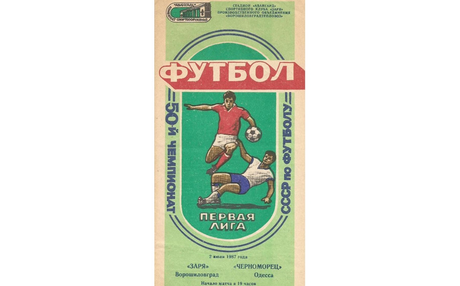 1987 год — «Заря» Ворошиловград — «Черноморец» — 2:2 (0:2). Чемпионат СССР. Ворошиловград. Стадион «Авангард». Голы: А. Щербаков (33, 38) — Ю. Колесников (53), Р. Зуб (89).