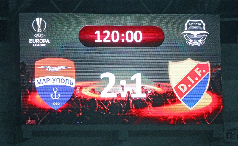 На стадионе «Черноморец» завершился ответный матч второго квалификационного раунда Лиги Европы между ФК «Мариуполь» и «Юргорденом» (Стокгольм, Швеция). В первой игре украинская команда добилась результативной ничьей (1:1), и сегодня азовцам было важно не пропустить. Мариупольцы открыли счет, но гостям удалось отыграться, и поединок перешел в овертайм. В первой дополнительной 15-минутке шведы пропустили второй мяч, который принес итоговую победу ФК «Мариуполь» - 3:2 (1:1, 2:1).