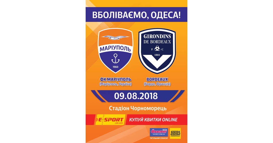 Продолжается реализация билетов на первый матч 3-го квалификационного раунда Лиги Европы между командами ФК «Мариуполь» (Украина) и ФК «Бордо» (Франция), который состоится в Одессе 9 августа (начало в 20:00).