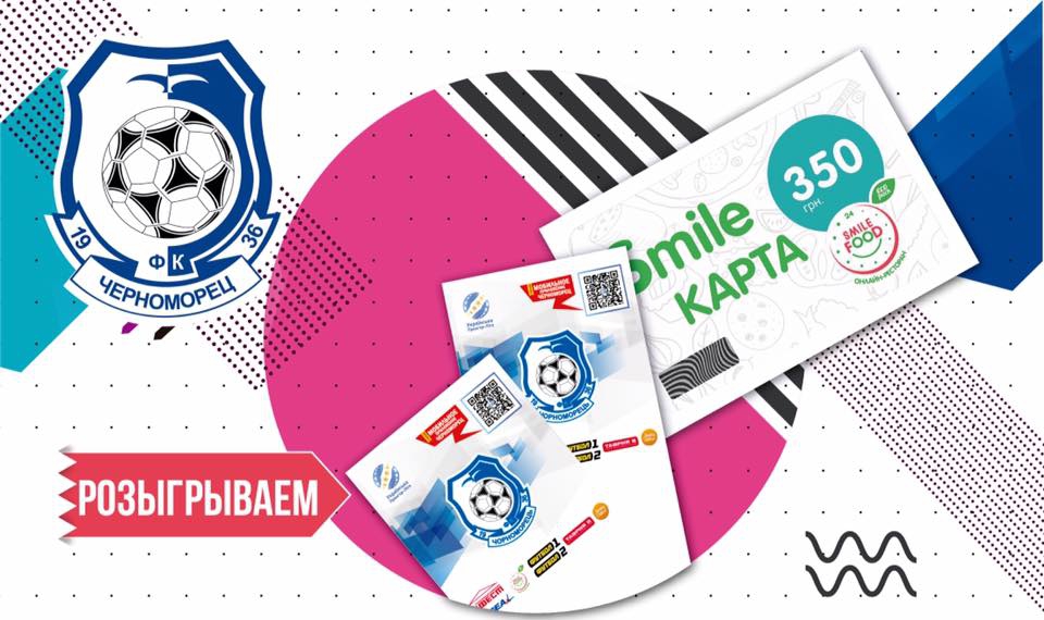 Дорогие друзья! ФК «Черноморец» продолжает проводить различные акции. Теперь мы разыгрываем подарочную карту на 350 гривен от нашего вкусного спонсора Суши и пицца в Одессе - smilefood.od.ua +2 билета на матч «Черноморца» и ФК «Львов», который пройдет в Одессе в субботу, 15 сентября.