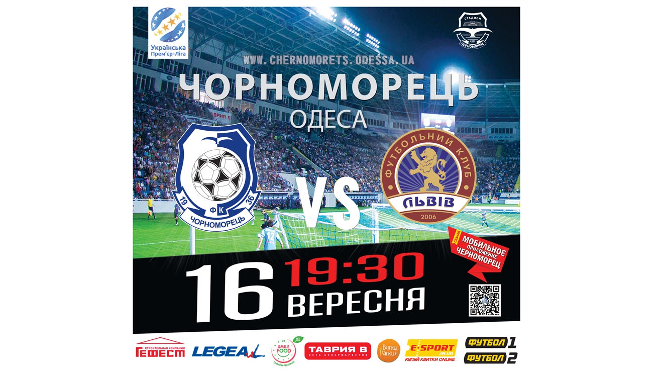Началась реализация билетов на матч 8-го тура чемпионата УПЛ между командами ФК «Черноморец» (Одесса) и ФК «Львов», который состоится 16-го сентября (начало в 19:30).