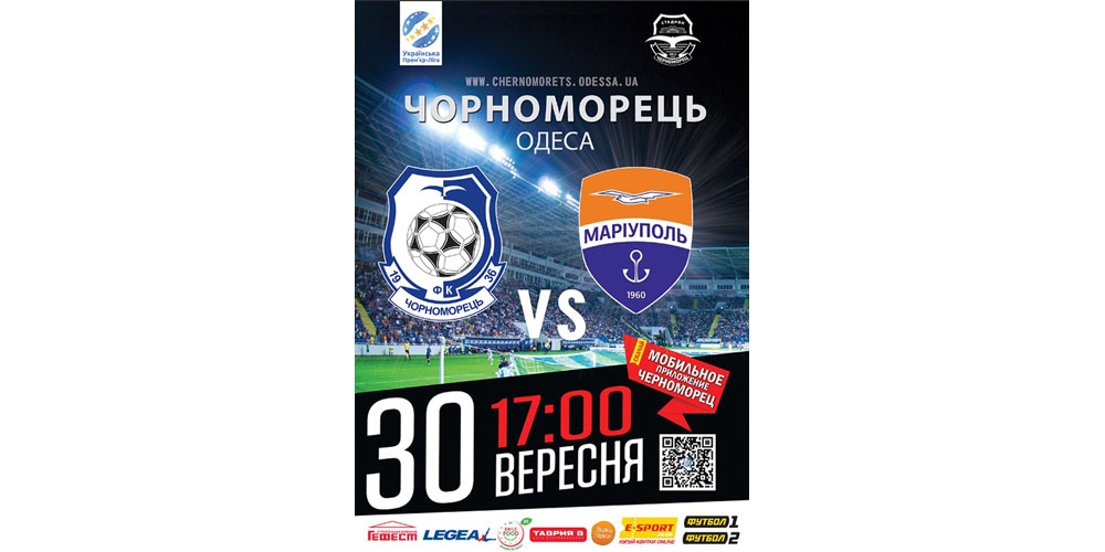 Началась реализация билетов на матч 10-го тура чемпионата УПЛ между командами ФК «Черноморец» (Одесса) – ФК «Мариуполь», который состоится 30 сентября (начало в 17:00).
