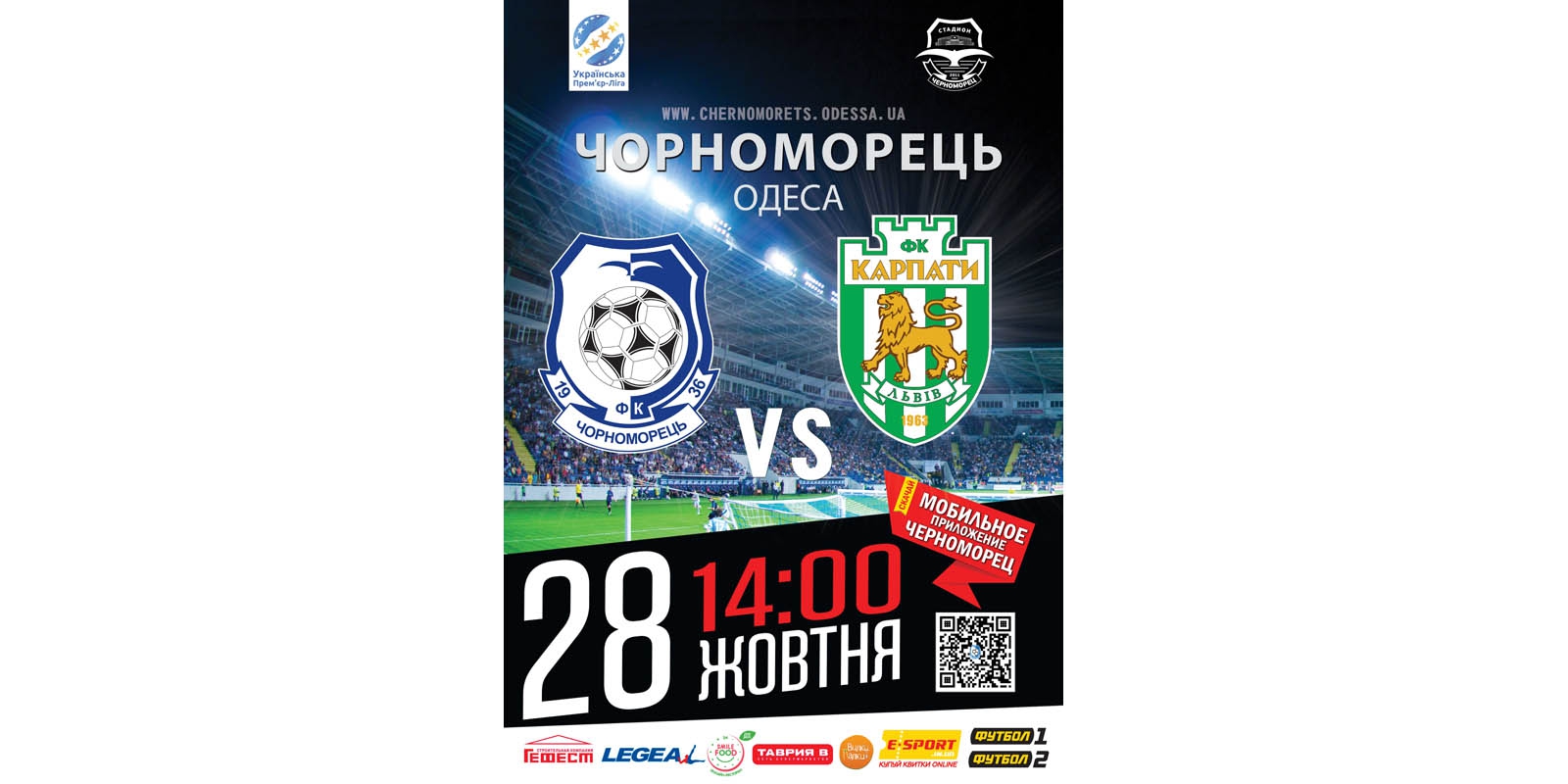 Началась реализация билетов на матч 13-го тура чемпионата УПЛ между командами ФК «Черноморец» (Одесса) и ФК «Карпаты» (Львов), который состоится 28-го октября (начало в 14:00).