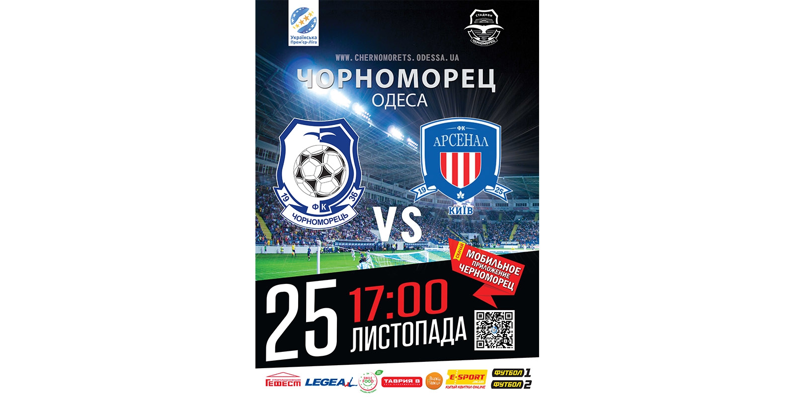 Началась реализация билетов на матч 16-го тура чемпионата УПЛ между командами ФК «Черноморец» (Одесса) и ФК «Арсенал-Киев», который состоится 25-го ноября (начало в 17:00). По решению КДК ФФУ исключены из продажи билеты на сектора №№ 5, 6, 20.