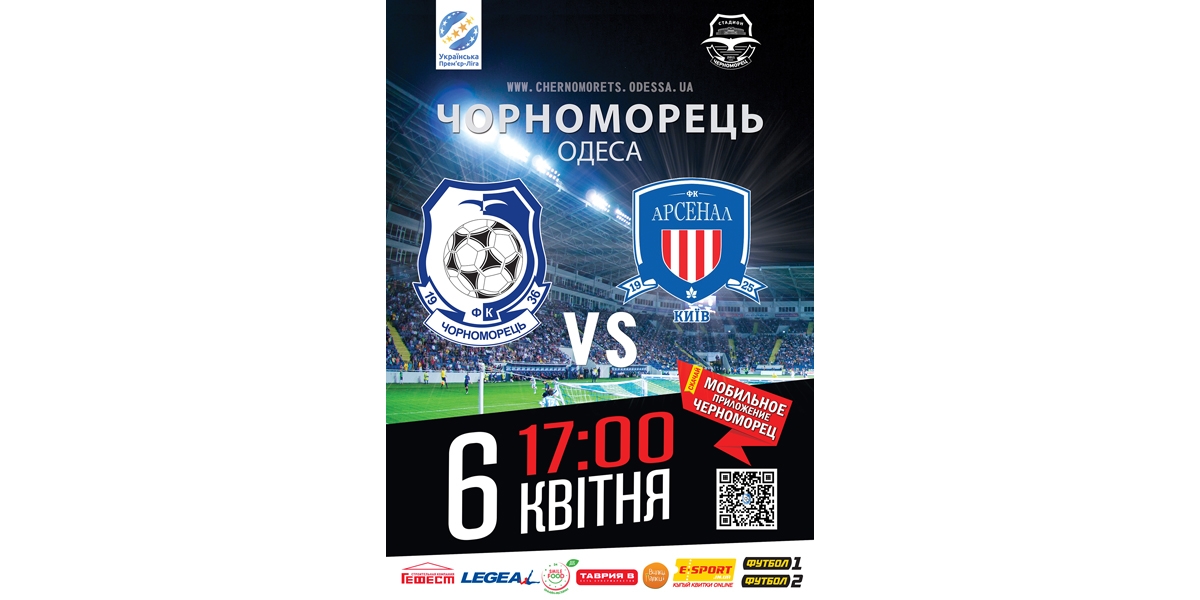 Началась реализация билетов на матч 23-го тура чемпионата УПЛ между командами ФК «Черноморец» (Одесса) и ФК «Арсенал-Киев», который состоится 6 апреля 2019 года (начало в 17:00).