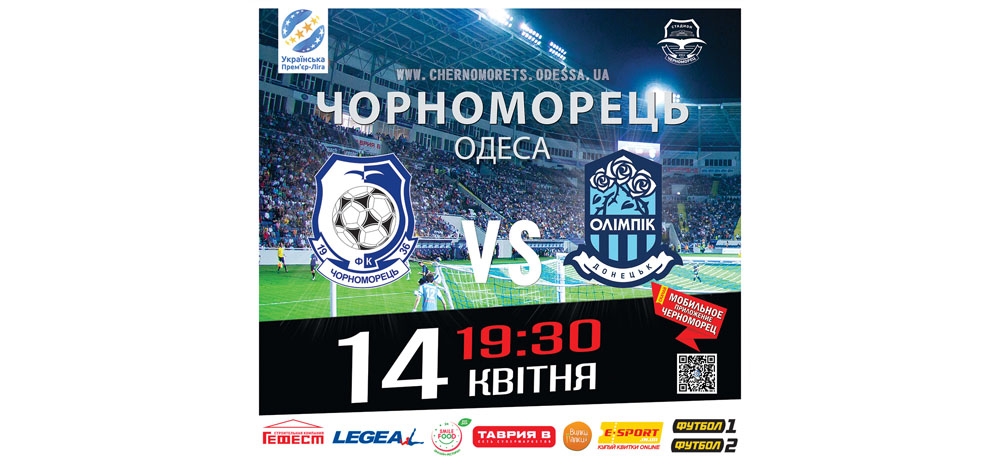 Стартовала продажа билетов на матч 24-го тура Чемпионата УПЛ между командами ФК «Черноморец» (Одесса) и ФК «Олимпик» (Донецк), который состоится 14-го апреля (начало в 19:30).
