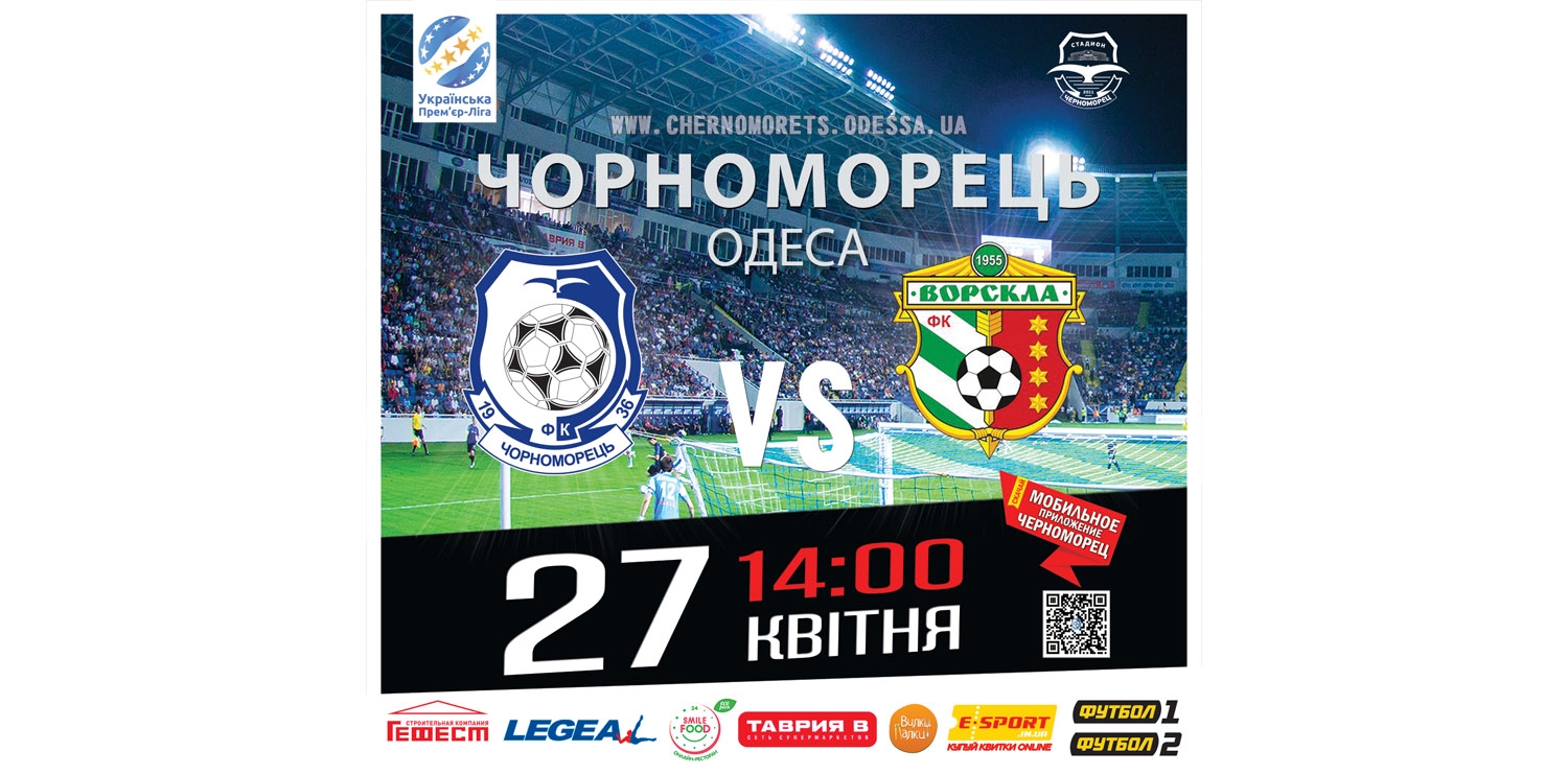 Началась реализация билетов на матч 26-го тура Чемпионата УПЛ между командами ФК «Черноморец» (Одесса) и ФК «Ворскла» (Полтава), который состоится 27 апреля (начало в 14:00).