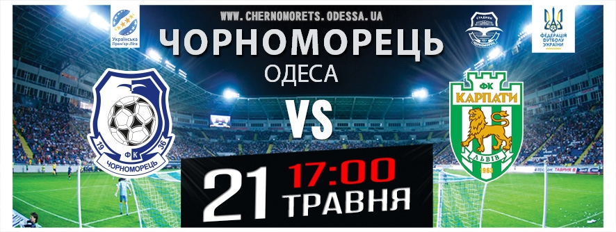 Началась ОНЛАЙН реализация билетов на матч 30-го тура Чемпионата УПЛ между командами ФК «Черноморец» (Одесса) и ФК «Карпаты» (Львов), который состоится 21-го мая 2019 года (начало в 17:00).
