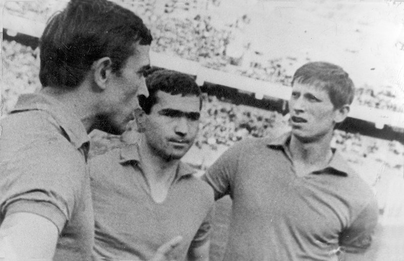 1969 год — «Динамо» Киев — «Черноморец» — 1:0 (0:0). Чемпионат СССР. Киев. Центральный стадион. Гол: В. Хмельницкий (85). (на фото – перед матчем В. Москаленко, В. Босый, В. Прокопенко).