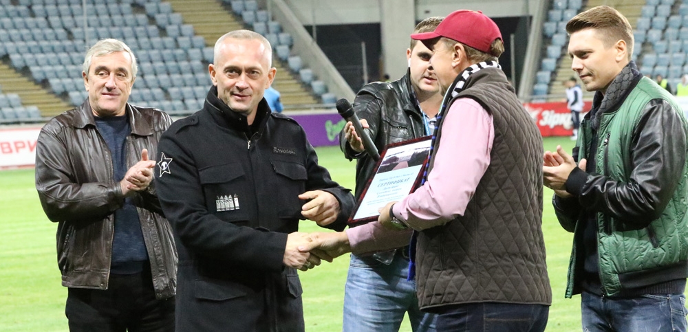 Футбольный клуб «Черноморец» продолжает традицию чествования своих самых преданных болельщиков. В перерыве матча «Черноморец» - «Черкащина» генеральный директор нашего клуба Анатолий Мисюра и директор стадиона «Черноморец» Сергей Сиволап вручили сертификаты на именные места.