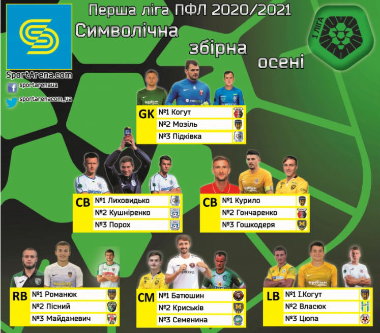 Sportarena определила 33 лучших футболистов осенней части чемпионата Украины среди команд первой лиги. В список вошли четыре игрока «Черноморца»: вратарь Роман ПИДКИВКА (под №3), центральный защитник Виктор ЛИХОВИДЬКО (№1), атакующий полузащитник Артур АВАГИМЯН (№3) и нападающий Артем КОВБАСА (№2).