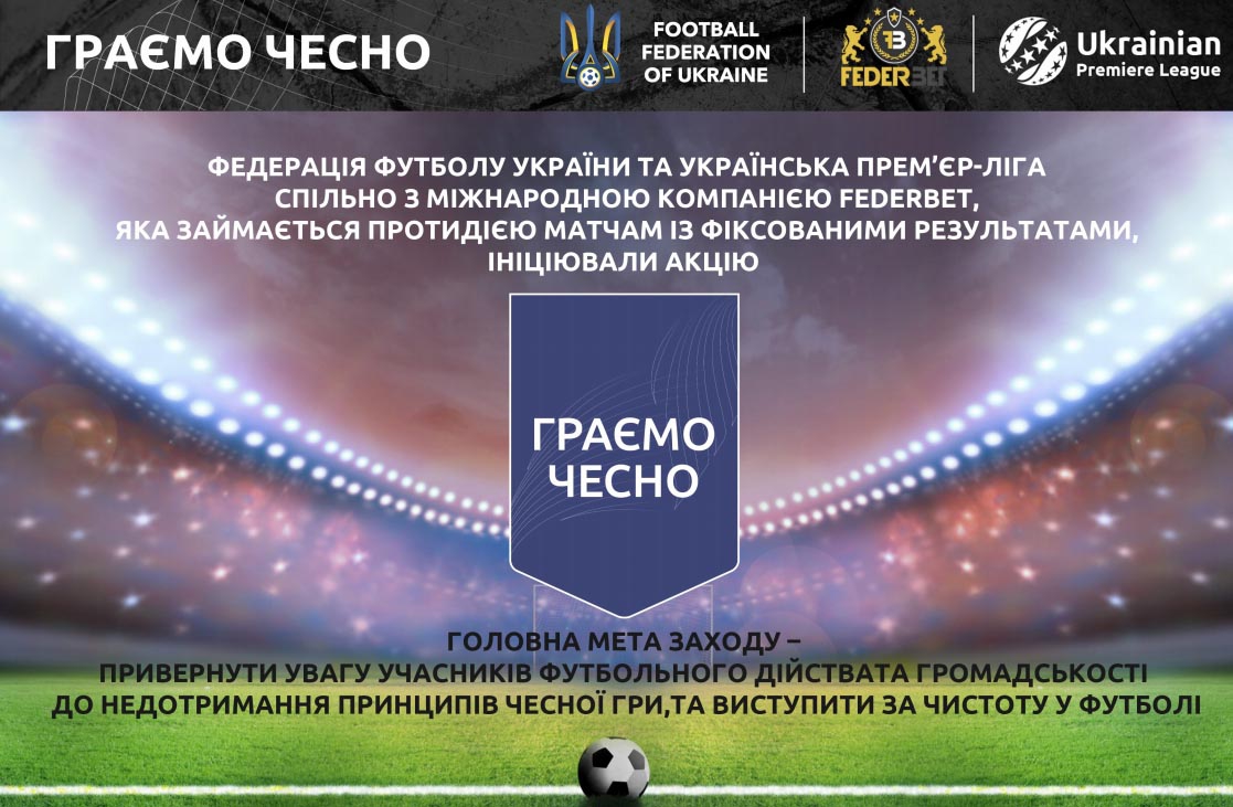 Федерация футбола Украины и Украинская премьер-лига совместно с международной компанией Federbet, которая занимается противодействием матчам с фиксированными результатами, инициировали акцию «Играем честно».