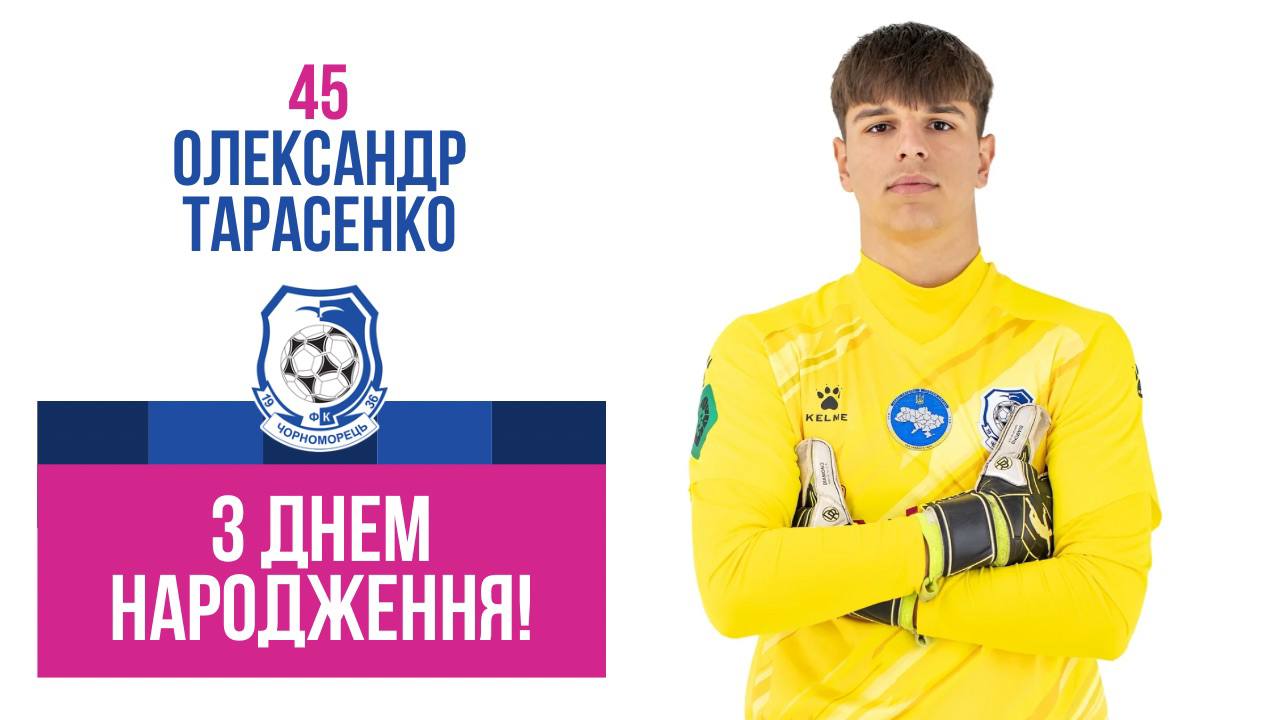 Сьогодні голкіперу «Чорноморця-2» Олександру ТАРАСЕНКУ виповнюється 18 років. Коллектив нашого клубу вітає «моряка» з днем народження та бажає успішної спортивної кар'єри, міцного здоров’я, удачі та благополуччя!