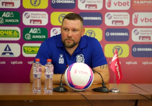 Прес-конференція головних тренерів команд: Василя Кобіна ("Інгулець") та Олександра Бабича ("Чорноморець").