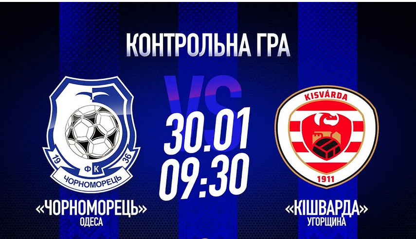 30 січня «Чорноморець» планує провести у Туреччині два тренувальні матчі. У першому з них «моряки» зустрінуться із ФК «Кішварда» (Угорщина). Пряма відеотрансляція поєдинку – на офіційному YouTube каналі ФК «Чорноморець». Початок о 9-30.