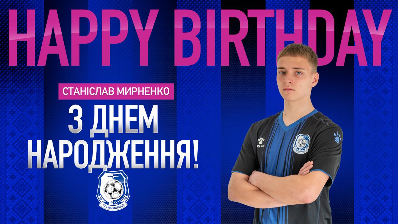 Колектив ФК «Чорноморець» вітає з днем народження футболіста другої команди Станіслава МИРНЕНКА, якому сьогодні виповнюється 18 років. Бажаємо здоров’я, удачі, благополуччя та яскравої спортивної кар'єри!