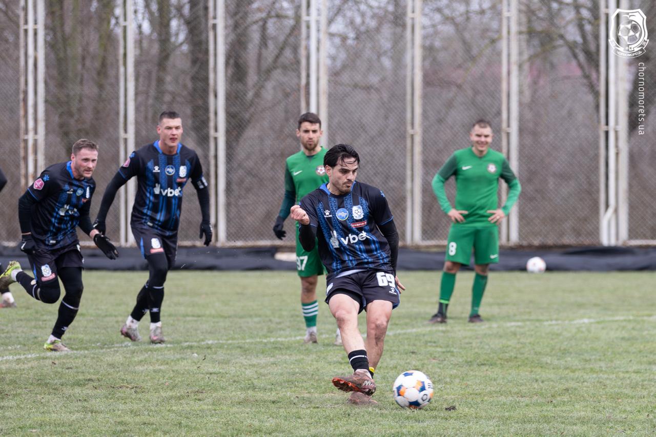 Гра з аматорською командою «Південна Пальміра НГУ», яку зараз тренує Олександр Горобець, пройшла великою перевагою «моряків». Рахунок відкрив Хобленко, який влучно пробив головою у кут воріт. Другий гол на рахунку М. Когута – він закрутив м’яч з 13 метрів у дальній кут. На 37 хвилині за фол проти Луньова був призначений пенальті. Йото чітко реалізував Авагімян – 3:0.