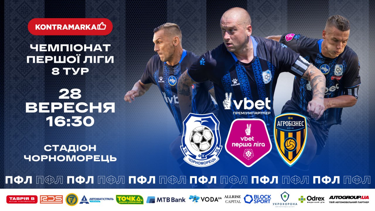 28 вересня в Одесі відбудеться матч 8 туру чемпіонату України VBET Перша ліга. «Чорноморець» буде приймати «Агробізнес» (Волочиськ). Гра почнеться о 16-30.