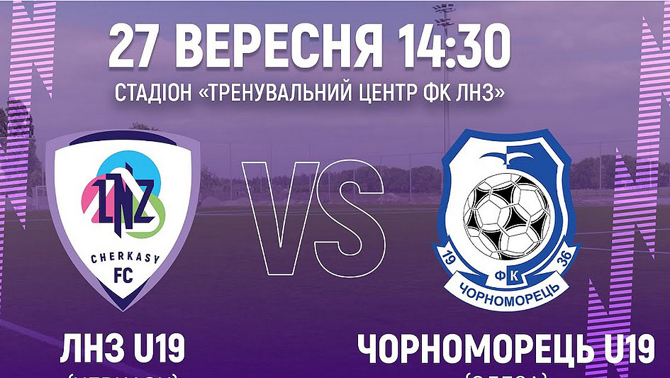 27 вересня пройде гра 8 туру чемпіонату юнацьких команд ЛНЗ (U-19) Черкаси - «Чорноморець» (U-19). Матч відбудеться на полі НТБ ФК ЛНЗ у Геронимівці (Черкаська область). Запланована пряма відеотрансляція зустрічі. Початок о 14-30.