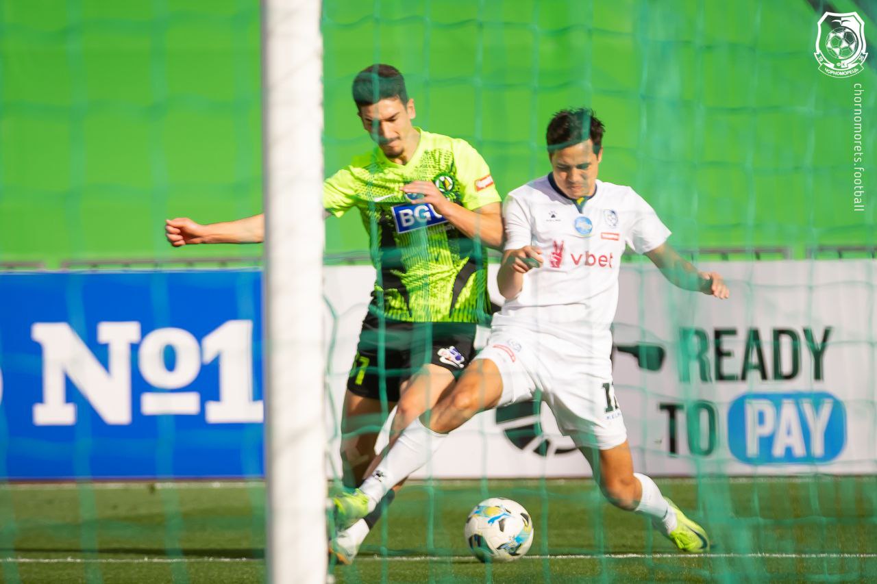 «Моряки» сковано розпочали гру, і це дуже швидко позначилося на результаті. На 5 хвилині після прострілу Крушинського м'яч від Лацабідзе влучив у стійку, потім відлетів від Рудька до Бітона, який повернув «снаряд» у воротарський майданчик на неприкритого Батісту – 0:1. Моменти біля наших воріт виникали регулярно. Рудько відбив «постріл» Гуцуляка на 13 хвилині, на 15-й виграв очну дуель у Крушинського. На 27 хвилині Бітон із 5 метрів головою послав м'яч над поперечиною. Наприкінці тайму «Полісся» подвоїло перевагу: Рудько відбив потужний удар Батісти, а Андрієвський був першим на добиванні – 0:2.