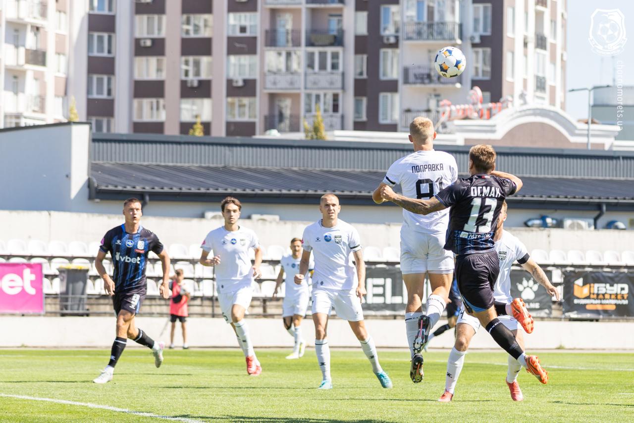 Сьогоднішній поєдинок вийшов дуже завзятим. Господарі прагнули ні в чому не поступатися гостям. У першому таймі відкрити рахунок могли обидві команди. На 11 хвилині Аніагбосо не зумів зафіксувати в руках м'яч, який виніс з лінії воріт Осман. У атаці у відповідь М. Когут промчав правим флангом і потужно пробив у ближній кут метрів з 10-ти (мимо). Вище воріт завдавали потенційно небезпечних ударів Сабієв (головою на 14 хвилині) та Парагвай (зі «стандарту» на 25-й). Потужний «постріл» Ювхимця на 34-й після гострої передачі Парагваю також припав вище поперечини. На 40-й удар Фого, що прорвався до кута воротарського, ногою відбив Аніагбосо. «Чорноморець» забив гол у результаті чудово розіграної комбінації. У ній взяли участь Лопирьонок, Романюк, Осман, який прострелив у воротарський, де Сабієв у боротьбі з Хобленком зрізав м'яч у власні ворота – 1:0.