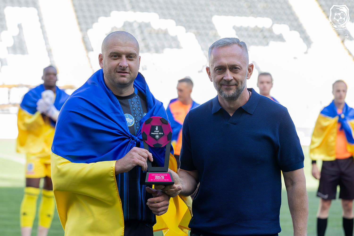 Перед початком матчу чемпіонату України «Чорноморець» - «Фенікс-Маріуполь» нагороду від VBET Перша ліга головному герою серпня вручив генеральний директор нашого клубу Анатолій МИСЮРА.
